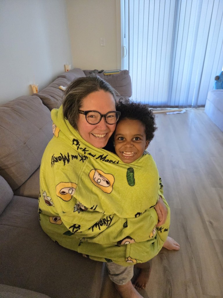 Ace climbed in, and we couldn’t stop laughing. Best snuggle ever!